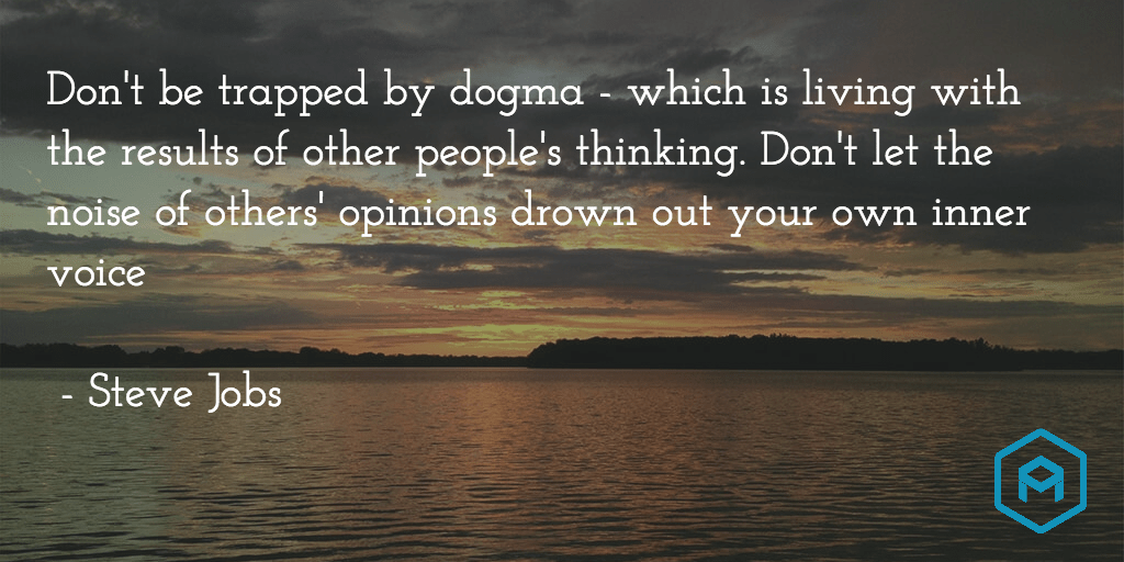 Your time is limited, so don’t waste it living someone else’s life. Don’t be trapped by dogma – which is living with the results of other people’s thinking. Don’t let the noise of others’ opinions drown out your own inner voice – Steve Jobs